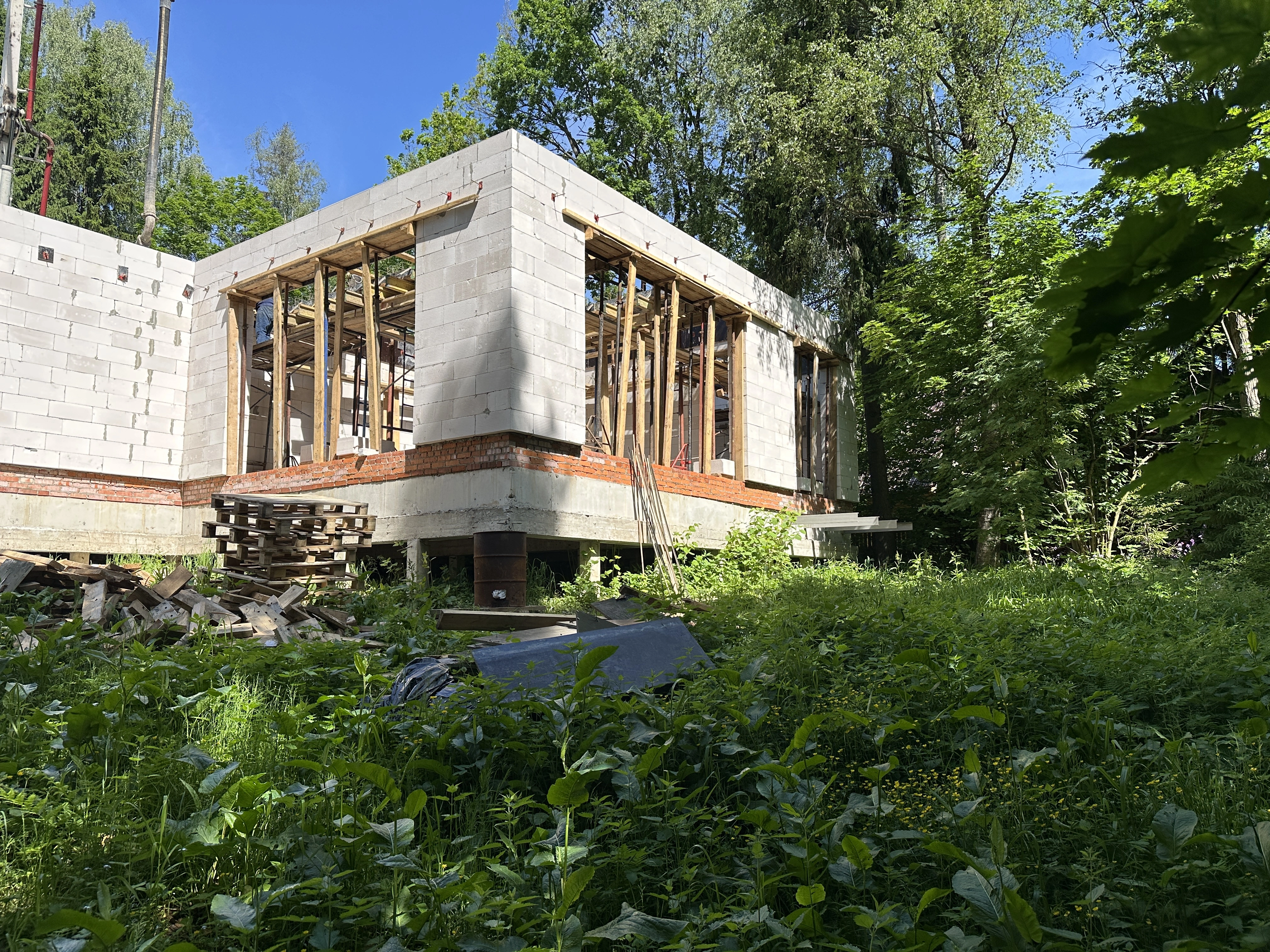 На фото - этапы строительства: фундамент, стены, перекрытия, кровля. Так вы видите, что мы отвечаем за весь цикл, а значит сроки и качество проще контролировать.